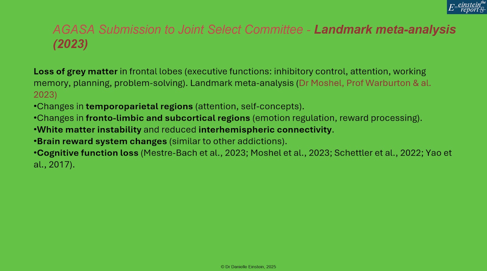 Because their concerns which were written also in another one of the submissions I read to the government are about what we are seeing now in terms of brain development. One of the issues they talk about so one of their studies showed this compounding impact of use on executive functioning the ability to plan, to think ahead. We all know it's having a bit of an effect on our attention and that's where this device discipline is so important that we actually acknowledge and recognise it. One of their concerns is also interhemispheric connectivity and they're sort of talking a bit about maybe - probably not but maybe - early onset dementia being seen when it's been but they're worried okay - so they want us to look and actually acknowledge as psychologists and researchers what might be going on and not be in denial about this.