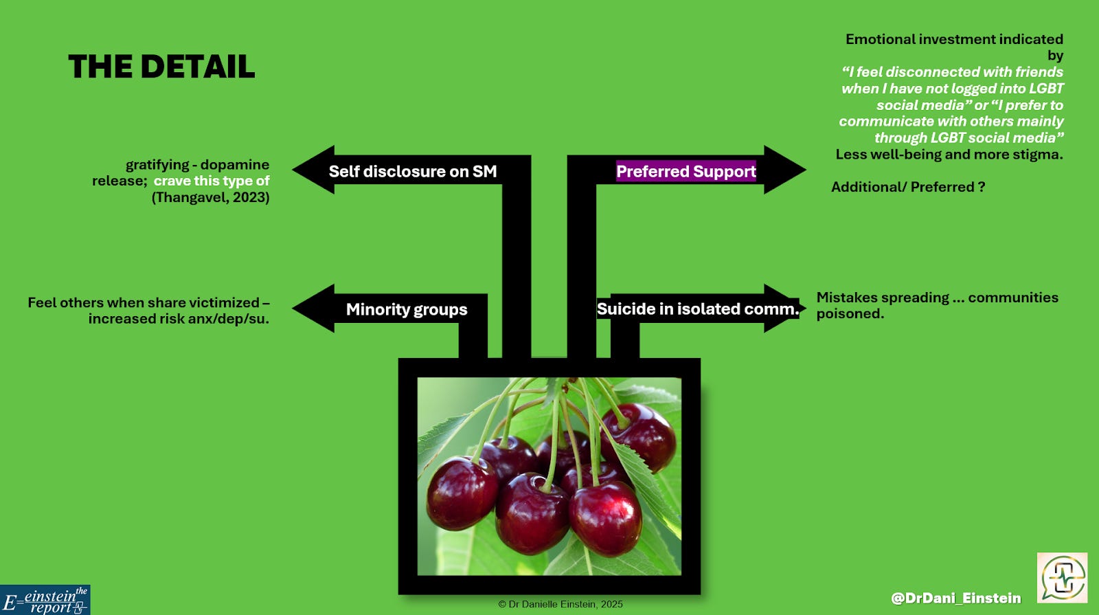 And all right I think this is a really important one which is when we think about minority groups because it's another one of those arguments that really pull us in. One thing that we've seen in the studies is one study showing that if you share your story of being victimized online then you're actually at increased risk of anxiety, depression or substance use.