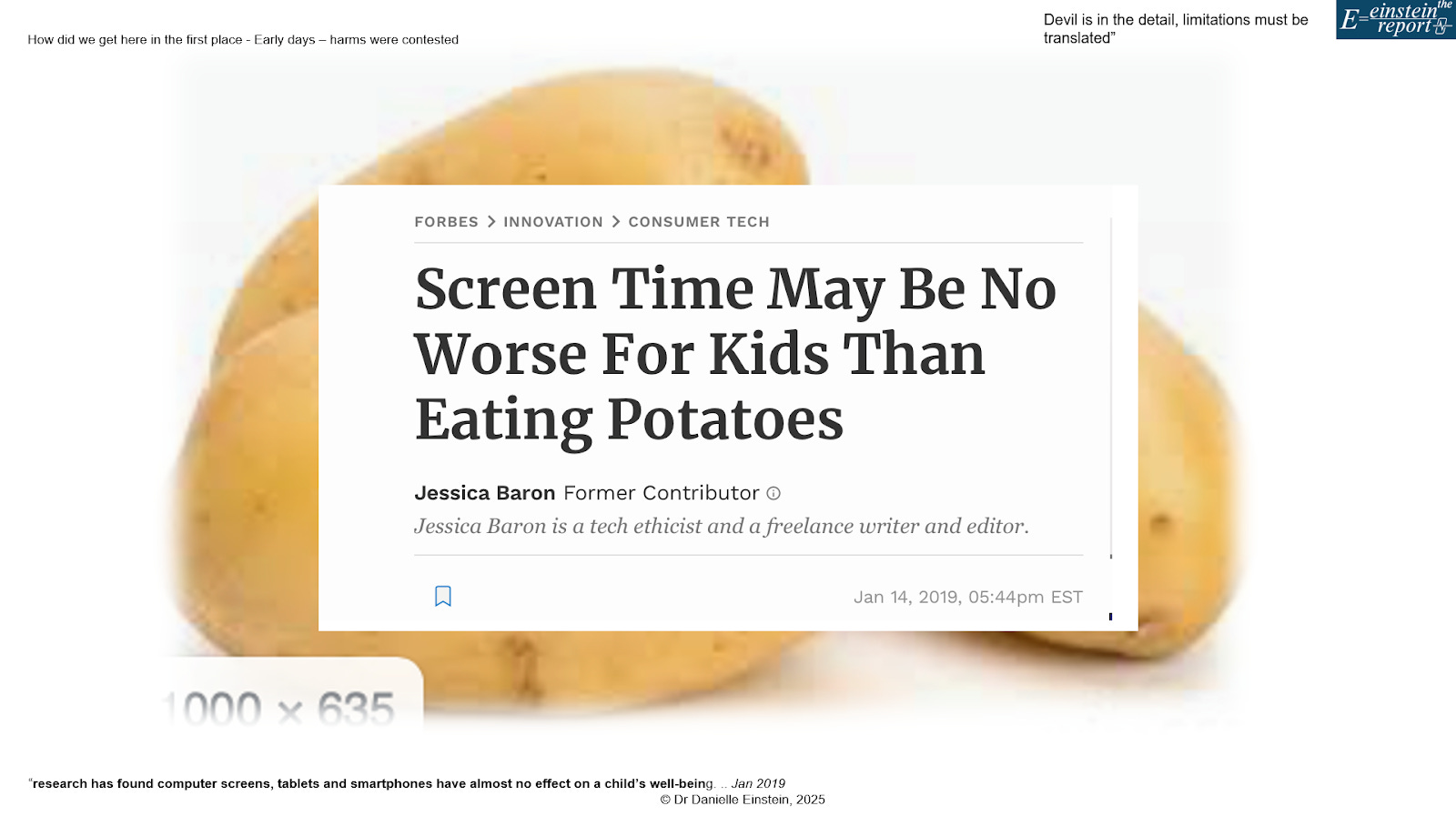 Now before I jump on to last year is I might say that as I was talking about ‘The Dip’ and doing my research with schools I was always reading research as it came out about device use and you might remember seeing this headline back in 2019 "Screen time maybe no worse for kids than eating potatoes" all right so I just want you to pretend that you are a parent many of you probably are parents and you read that what would you think?